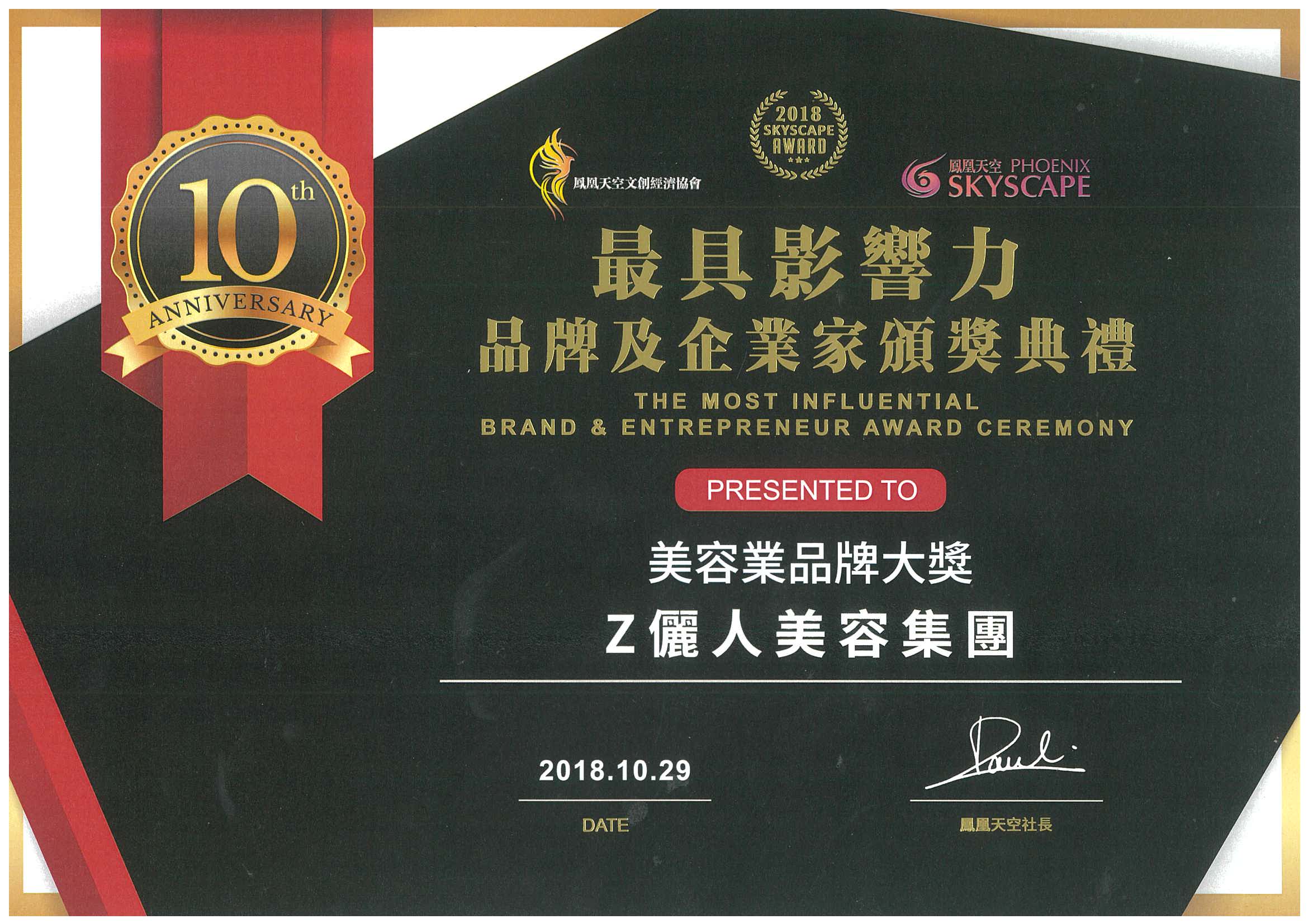 澳門《鳳凰天空》颁发「最具影响力美容品牌及企業家」大獎