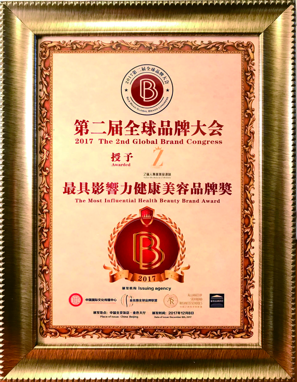 第二届全球品牌大會頒發的「全球最具影響力健康美容品牌」獎